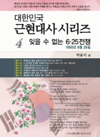 [대한민국 근현대사 시리즈]제4권 『잊을 수 없는 6ㆍ25전쟁』. 이 시리즈는 대한민국 근현대사를 네 부분으로 나누어 각 시기의 역사를 살펴본다. 제4권은 1950년 6월 25일 6ㆍ25 전쟁 등의 역사를 자세하게 정리한 것으로, 전쟁 수행이 불가능했던 남한의 상황, 3년 1개월 2일간 전쟁의 참화, 북한 사회의 실상 등에 대해 알아본다.