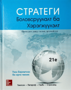 Товч агуулга:Артур А. Томпсоны “Стратеги: боловсруулалт ба хэрэгжүүлэлт” бүтээлийн 1992 оны 6 дахь хэвлэл орос хэлнээ орчуулагдан, МУИС-д “Стратегийн менежмент” хичээлийг заах сургалтын үндэс суурь болсон бол 30 жилийн дараа түүний 21 дэх хэвлэлийг үе үеийн шавь нар нь тус хичээлийн анхны хөтөлбөрийг монгол хэлнээ орчуулан уншигч та бүхэнд хүргэж байна. Энэ удаагийн хэвлэл нь өрсөлдөөний давуу талд хүрэхэд байгууллага хоорондын үйл ажиллагаа болон хамрах стратегийн гүйцэтгэх үүгийг номын олон бүлгүүдэд уялдаатайгаар авч үзсэн, олон улсад өрсөлдөх стратегийн компанийн үйл ажиллагааны хамрах хүрээний нэг хэсэг гэж авч үзэж бусад хэсгүүдтэй хэрхэн холбогдож байгааг илүү ойлгомжтой болгож өгсөн зэргээрээ онцлог. Түүнээс гадна бизнесийн ёс зүй, компанийн нийгмийн хариуцлага, хүрээлэн буй орчны тогтвортой байдлыг стратеги боловсруулах, хэрэгжүүлэхэд яагаад авч үзэх ёстойг тусд нь нэг бүлэг гарган тайлбарласан байна.