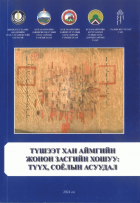 Товч агуулга:2023 онд ШУА-ийн Түүх, угсаатны зүйн хүрээлэнгээс Булган аймгийн Дашинчилэн, Баяннуур сумдад “Түшээт хан аймгийн Жонон засгийн хошуу: түүх, соёлын асуудал" сэдэвт эрдэм шинжилгээний хурлыг зохион байгуулсан байна. Тус хуралд ШУА-ийн Түүх, угсаатны зүйн хүрээлэн, Археологийн хүрээлэн, МУИС, МУБИС, Төмөр замын дээд сургууль, Богд хааны ордон музей, Булган аймгийн түүхчдийн холбоо зэрэг байгууллагын эрдэмтэн судлаачид болон бусад хувь судлаачид оролцож нийт 14 илтгэлийг хэлэлцүүлжээ. Илтгэлүүдэд тус хошууны түүхэнд хамаарах түүх, соёлын дурсгалууд, түүхэн хүмүүс, Булган аймгийн Бүрэгхангай, Дашинчилэн сумын нутагт явуулсан угсаатны зүйн судалгааны тойм, Баяннуур суманд 2016 онд явуулсан угсаатны зүйн хээрийн шинжилгээний үр дүн зэрэг Жонон засгийн хошууны түүх соёлын асуудалд хандсан олон илтгэл хэлэлцэгдсэн агаад эдүгээ хурлын эмхэтгэлийг хэвлэж уншигч та бүхэнд өргөн барьж байна.