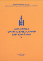 Товч агуулга:Энэхүү ном нь төрийн албанд ажиллаж буй албан хаагчдын мэдлэг, ур чадварыг хөгжүүлэх, төрийн байгууллагын үйл ажиллагааг илүү үр ашигтай, хариуцлагатай хэрэгжүүлэхэд чиглэсэн бүтээл юм. Энэхүү номд төрийн удирдлага, бодлого боловсруулах үйл явц, байгууллагын зохион байгуулалт, төрийн үйлчилгээний чанар, төрийн албаны ёс зүй зэрэг чухал сэдвүүдийг онол, практикийн хослолтойгоор тайлбарласан байна. Номын агуулгад төрийн албан хаагчдын өдөр тутмын ажилд шаардлагатай хууль эрх зүйн мэдлэг, удирдлагын арга барил, байгууллагын соёл, харилцаа хандлага болон иргэдэд үзүүлэх үйлчилгээний стандартын талаарх ойлголтыг дэлгэрэнгүй тусгасан хийгээд төрийн байгууллагын үйл ажиллагааг боловсронгуй болгох, ил тод байдал, хариуцлагыг нэмэгдүүлэхэд чиглэсэн зөвлөмж, туршлагуудыг багтаасан болно.
