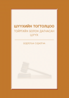 Товч агуулга:Энэхүү судалгаагаар анхан болон давж заалдах шатны шүүхийг тойргийн зарчмаар, дагнасан хэлбэрээр байгуулах хамгийн боломжит хувилбарыг санал болгох, зөвлөмж боловсруулах, судалгааны үр дүнд тулгуурлан газрын зураглал (инфографик зураг) боловсруулахаар төлөвлөж байна. Түүнчлэн дагнасан шүүх, тойргийн шүүх, тусгай шүүх зэрэг нэр томьёоны хэв шинжүүдийг тодорхойлж, нэг мөр болгох, дагнасан шүүхийн давуу болон сул талыг тодорхойлох, цаашид (ойрын хугацаанд) манай улсад ямар хэлбэрийн дагнасан шүүх байгуулах хэрэгцээ шаардлага байгаа талаар дүгнэлт зөвлөмж гаргах юм.