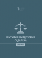 Товч агуулга:Шүүхийн шийдвэрийн шинжилгээ эмхэтгэлийн энэ удаагийн цувралд эрүүгийн эрх зүйн шинэтгэлийн хүрээнд нийгмийн харилцаанд тулгамдаж, иргэдийн эрх ашгийг хөндөж буй 45 асуудлыг Эрүүгийн хуульд шинээр гэмт хэрэгт тооцон оруулсан бөгөөд эрүүгийн хэрэг хянан шийдвэрлэх тухай хуульд шүүхийн урьдчилсан хэлэлцүүлэг, эрүүгийн хэргийг хялбаршуулсан журмаар хянан шийдвэрлэх зэрэг ажиллагааг шинэлэг агуулгаар тусган хэрэгжүүлж эхэлсэн талаар судалсан Монгол улсын эрүүгийн хуульд шинээр тусгасан гэмт хэргийг шийдвэрлэж буй шүүхийн практик заналхийлах гэмт хэрэг ба өрсөлдөх хэм хэмжээ, Эрүүгийн хэргийг хялбаршуулсан журмаар шийдвэрлэсэн шүүхийн шийдвэрийн дүн шинжилгээ гэсэн хоёр сэдвийн хүрээнд авч үзсэн болно.