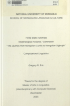 Зохиогч: Gregory R. Eck. Эрхлэн гаргасан байгууллага: МУИС. ШУС. ХУС